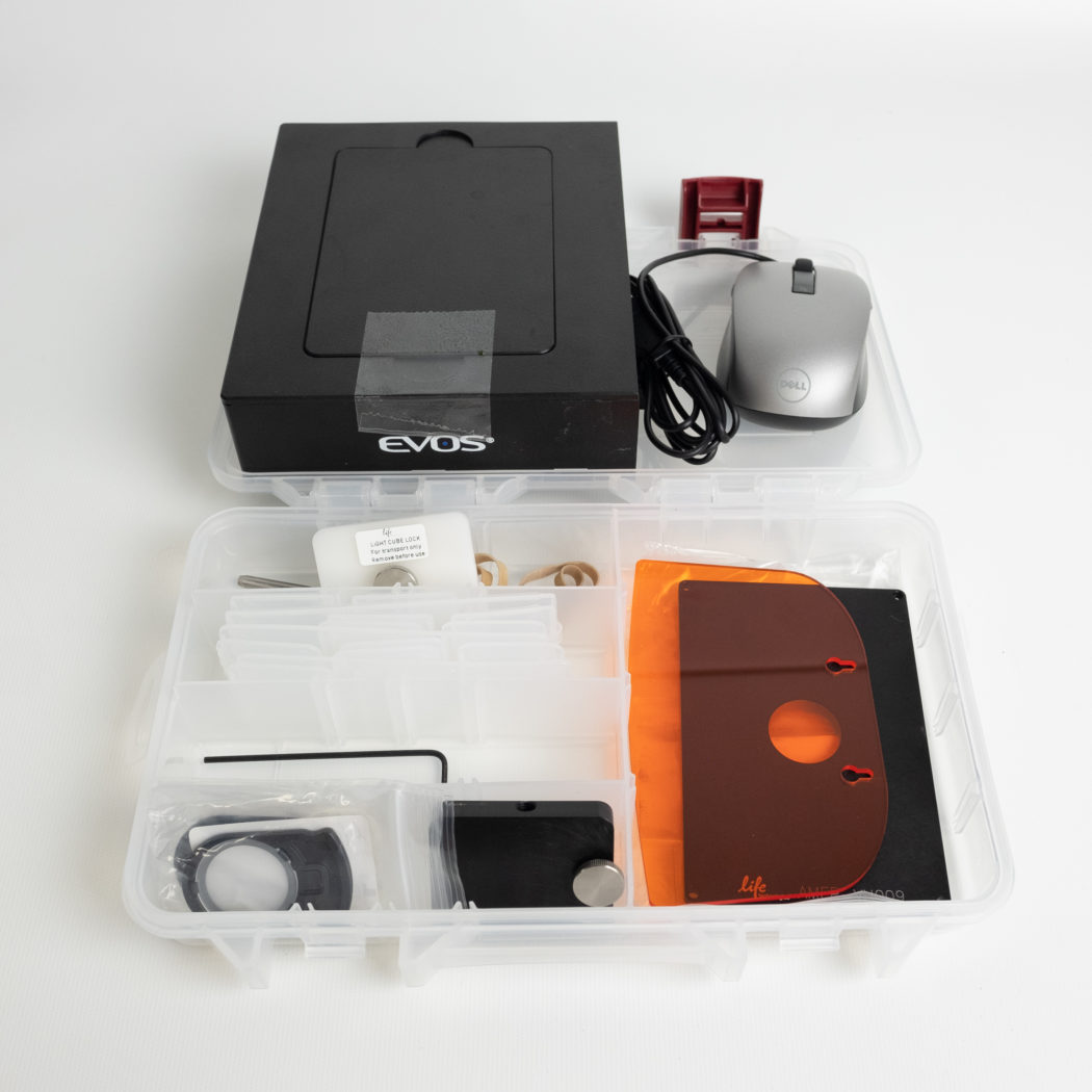 This instrument is in immaculate condition and is being sold with three light cubes (DAPI, GFP and TX RED) along with a universal vessel holder for the stage. Other instrument accessories included.