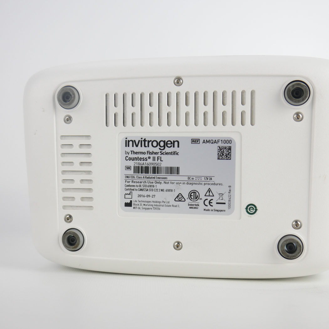 The Life Technologies Countess II FL Automated Cell Counter is a benchtop assay platform equipped with state-of-the-art optics, full autofocus, and image analysis software for rapid assessment of cells in suspension. With three-channel flexibility—brightfield and two optional fluorescence channels—researchers can count cells, monitor fluorescent protein expression, evaluate apoptosis, and measure cell viability.