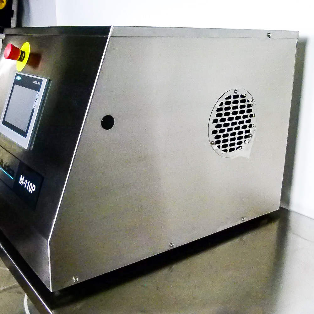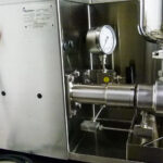 This third generation M-110P microfluidizer contains an on-board 2 hp electric-hydraulic drive that powers a single acting intensifier pump. Process pressures may be adjusted from 2,000-30,000 psi to produce the desired product results. As the reciprocating intensifier pump travels through its pressure stroke, the product is driven through the diamond interaction chamber. The fixed geometry micro channels accelerate the product stream to high velocities. The result is high-shear and impact forces giving the desired result. Upon exiting the interaction chamber, the product flows through an external cooling coil which regulates the product temperature. At this point, the product stream may be recirculated through the system for additional processing or sent to the next step in your process.