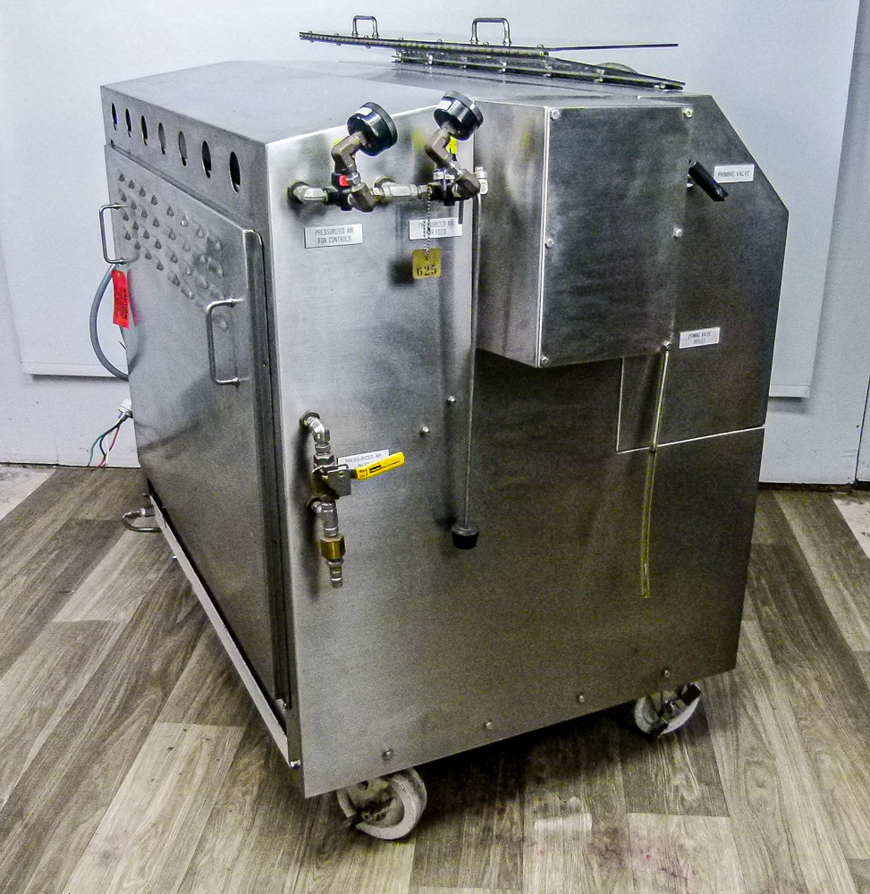 This system was fully checked out by a Microfluidics service technician a few years back and then never used because the project changed focus. The unit has a high capacity G10Z 87 micron interaction chamber that has never been used. An auxiliary chamber (L210Z, 250 microns) is just upstream of the interaction chamber to provide preliminary homogenization. The system is mounted on casters for easy transport. A comparable system on the retail market would probably be around $150K and this one is listed at a fraction of that amount. It also includes a 60 day warranty.
