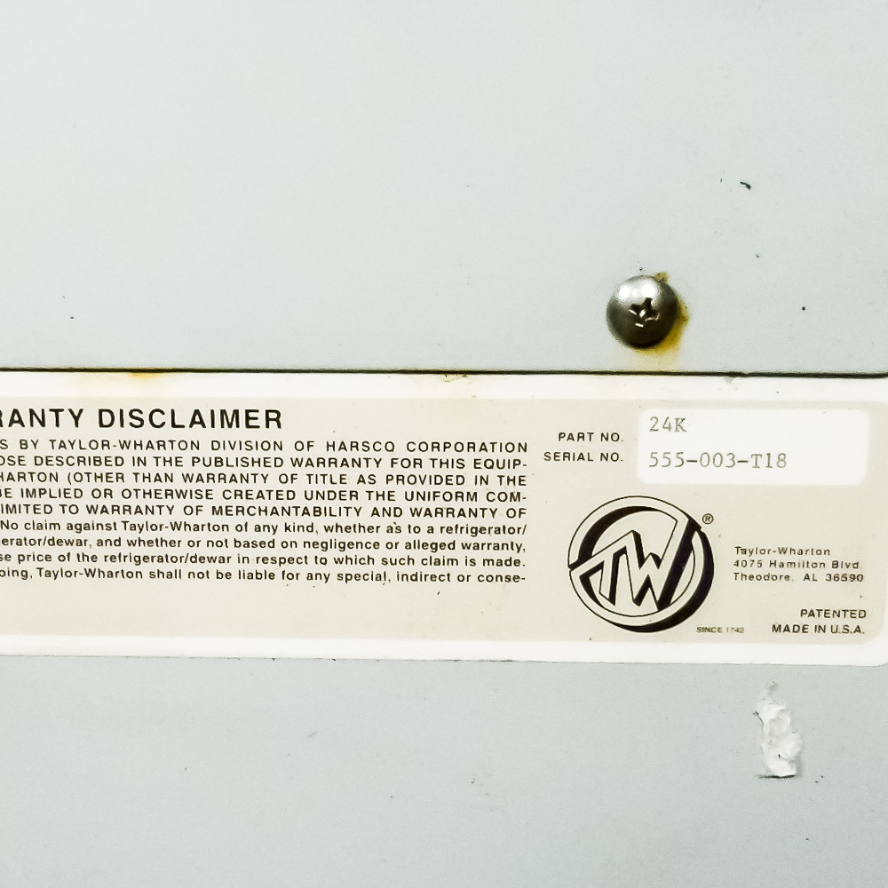 The Taylor Wharton 24K LN2 System is the perfect cryogenic storage solution when you require storage capacities of up to 24,050 2ml vials. This unit features a wide neck opening for easy access to samples, a durable powder coated cabinet, and a stainless steel vacuum vessel with superior performance. This freezer comes complete with 16 sample racks and LN2 fill hose. Prior to shipping, it will be fully tested with LN2 as part of the exit check and will be sold with a 60-day warranty.