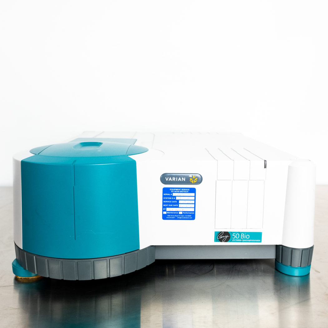 The Varian Cary 50 UV-Visible Spectrophotometer is a budget-priced instrument that can make remote fiber optic UV-visible measurements without a compromise in quality. Using a powerful Xenon flash lamp and a concentrated beam the instrument can make measurements on samples up to 3 Abs. It can scan the whole wavelength range (190-1100 nm) in only 3 seconds. The spectrophotometer supports a wide selection of optional accessories for both liquid and solid samples. The instrument is nicely suited for life science and chemical QA/QC applications where remote sampling is important. Many universities also use the Cary 50 as a reliable, low-cost spectrophotometer in their teaching laboratories.