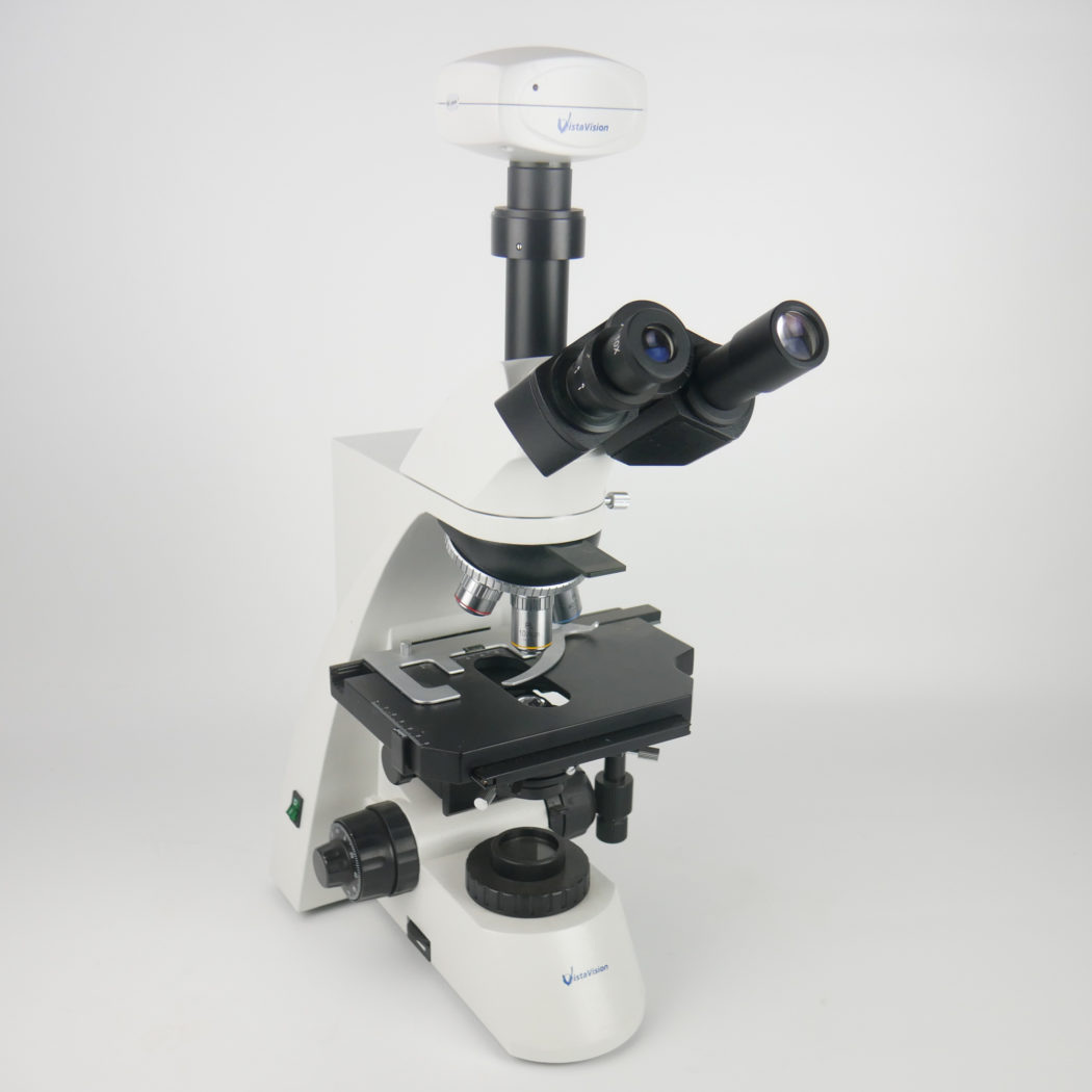 - Siedentopf designed triocular head with single diopter adjustment fitted with USB camera